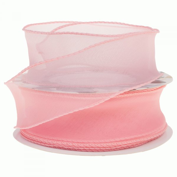 Лента органза на леске, цвет светло-розовый, 40мм*10ярд