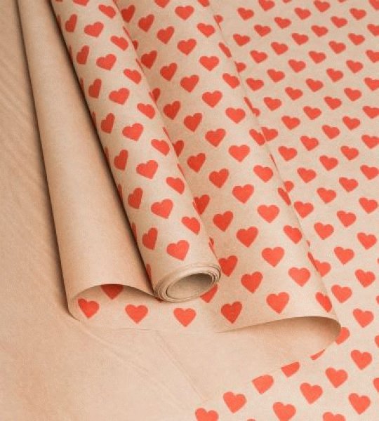 Бумага крафт бурый"Сердце", 70 смx10 м, 70 г/м2 Красный